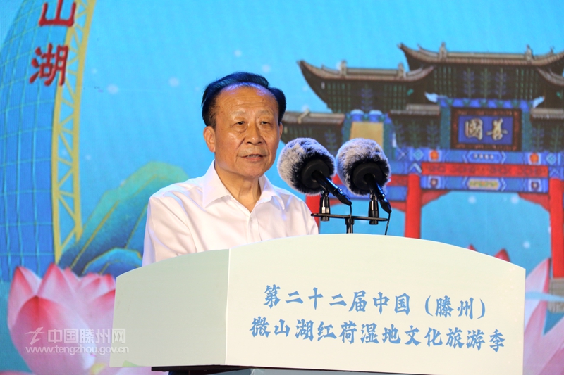 墨子家鄉文韻濃,善城滕州荷正紅。7月26日,備受社會關注的第二十二屆中國(滕州)微山湖紅荷濕地文化旅游季暨濟南(大明湖)·滕州(紅荷濕地)雙城聯動賞荷季開幕式舉行。山東省委原副秘書長、省精品旅游促進會會長杜文彬,山東廣電傳媒集團黨委副書記、總經理張先,以及山東省發展和改革委員會、山東省商務廳、山東省總工會、山東省文化和旅游廳相關負責人等應邀出席開幕式。棗莊、滕州兩級市領導王廣部、劉吉忠、劉曉璐、朱晏辰、薛登峰出席開幕式。