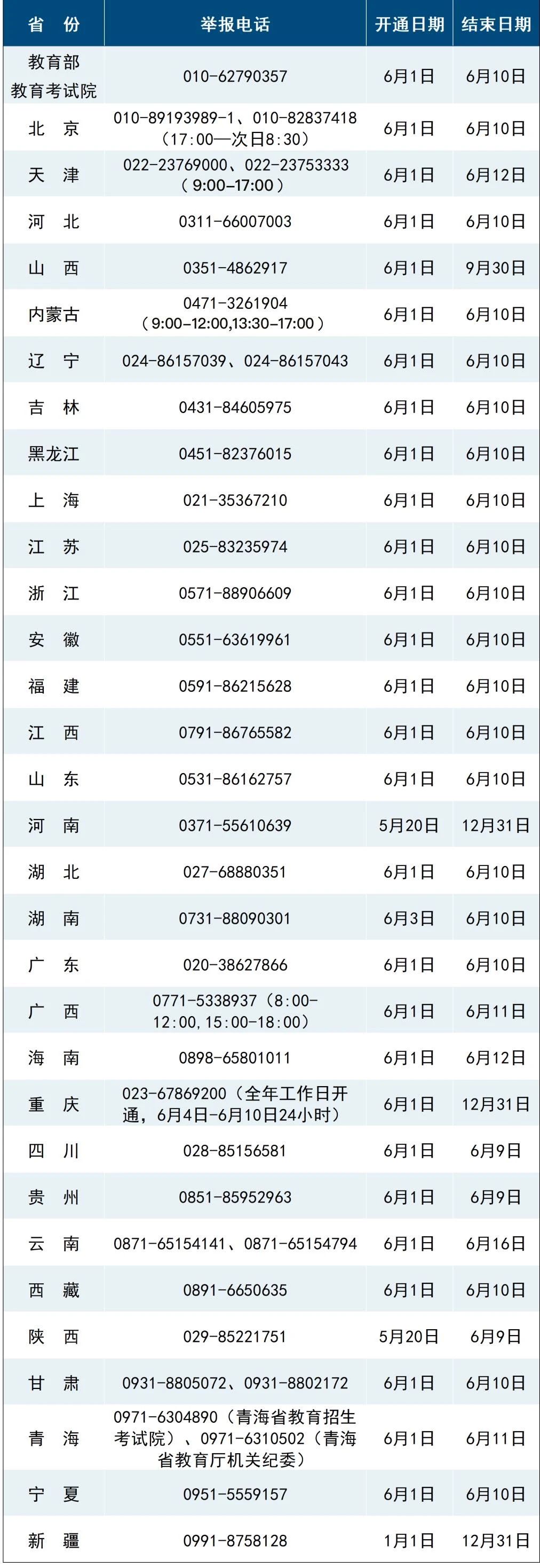 2025年高考將于6月7日開考。近日,教育部統一公布了教育部以及各省(區、市)2025年的高考舉報電話。